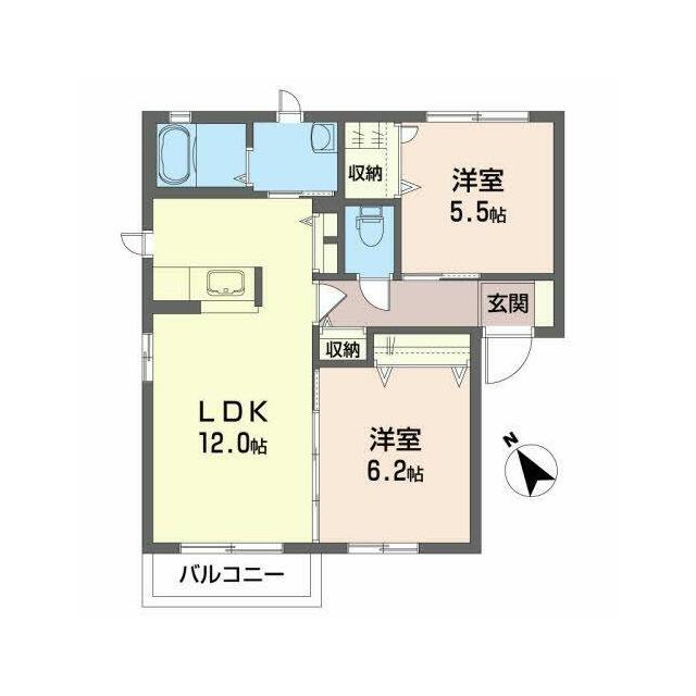 2LDK(LDK12.0帖 洋室5.5帖 洋室6.2帖) |